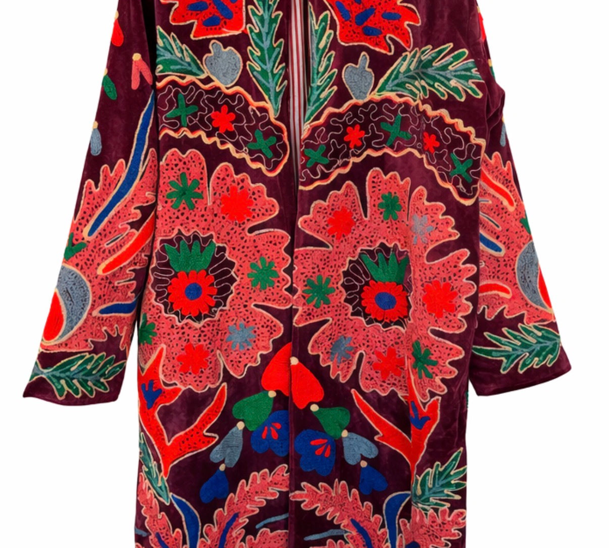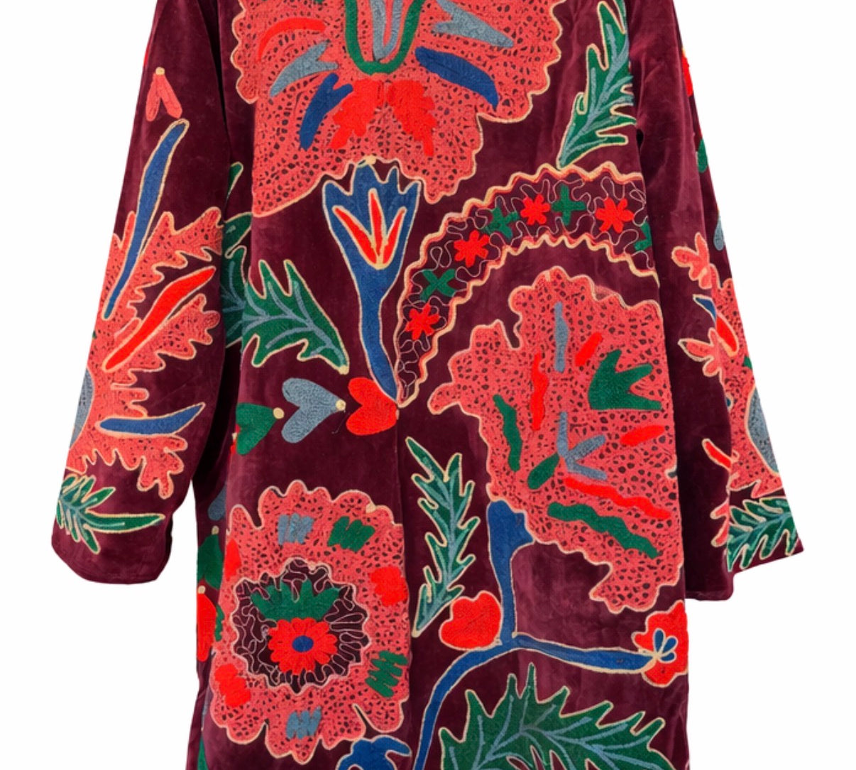 Velvet Embroidered Long Jacket – Red