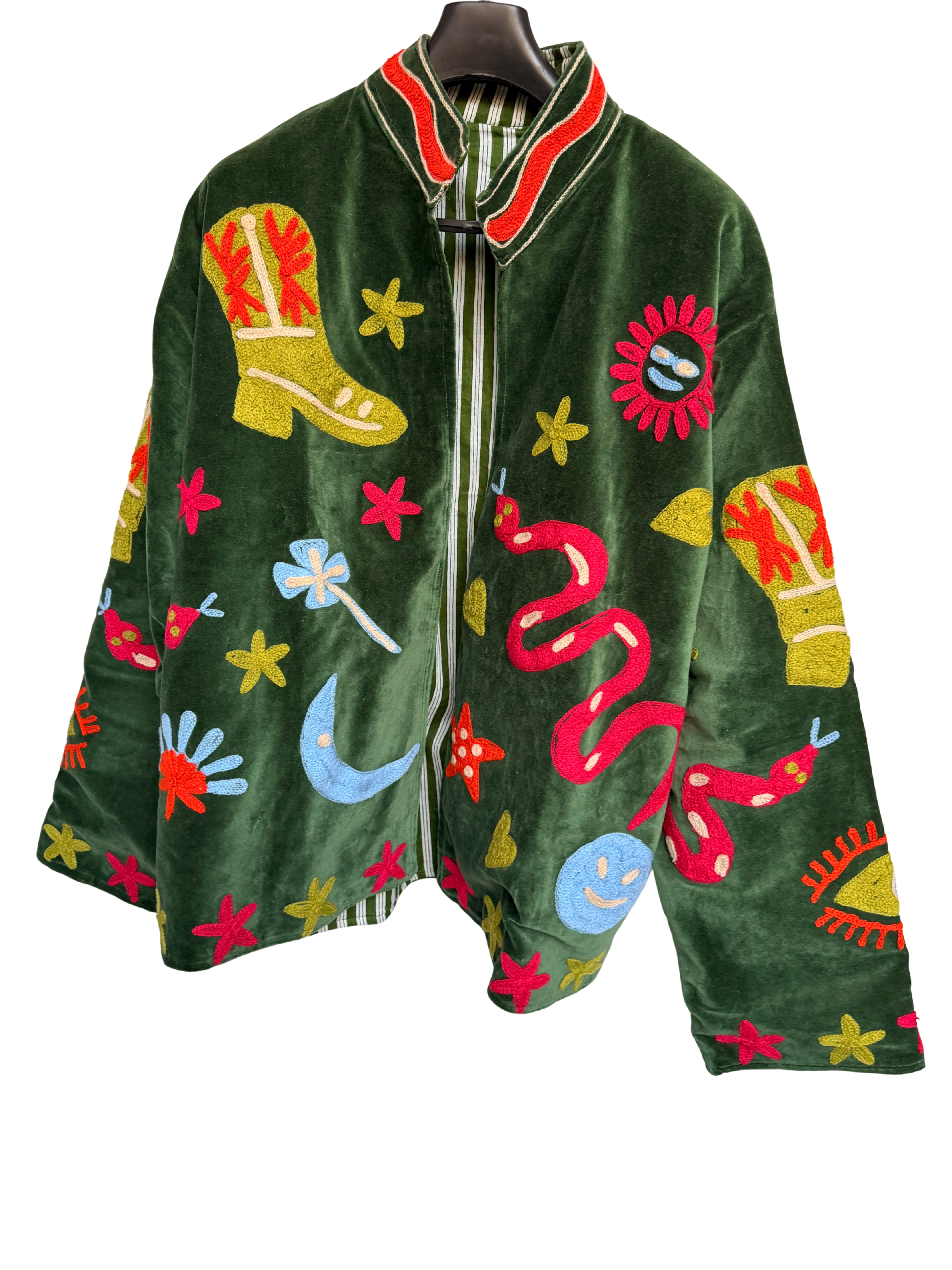 Wrap yourself in timeless artistry with our Suzani Embroidered Jacket. Featuring intricate Suzani embroidery — a celebrated Central Asian needlework tradition — this handcrafted piece beautifully merges heritage craftsmanship with contemporary elegance. Designed with soft cotton lining for comfort, it’s a statement layer that transforms any outfit effortlessly.
