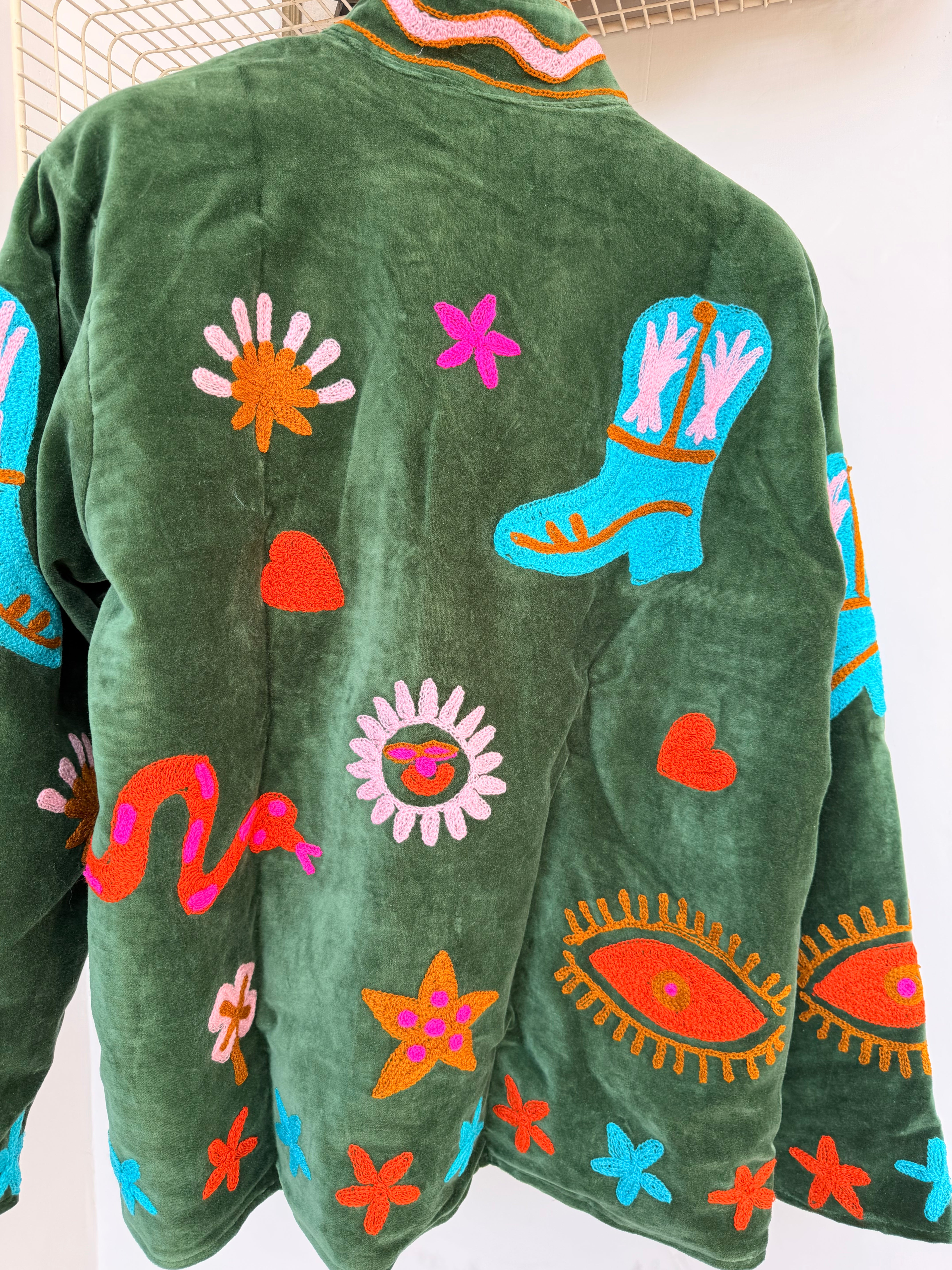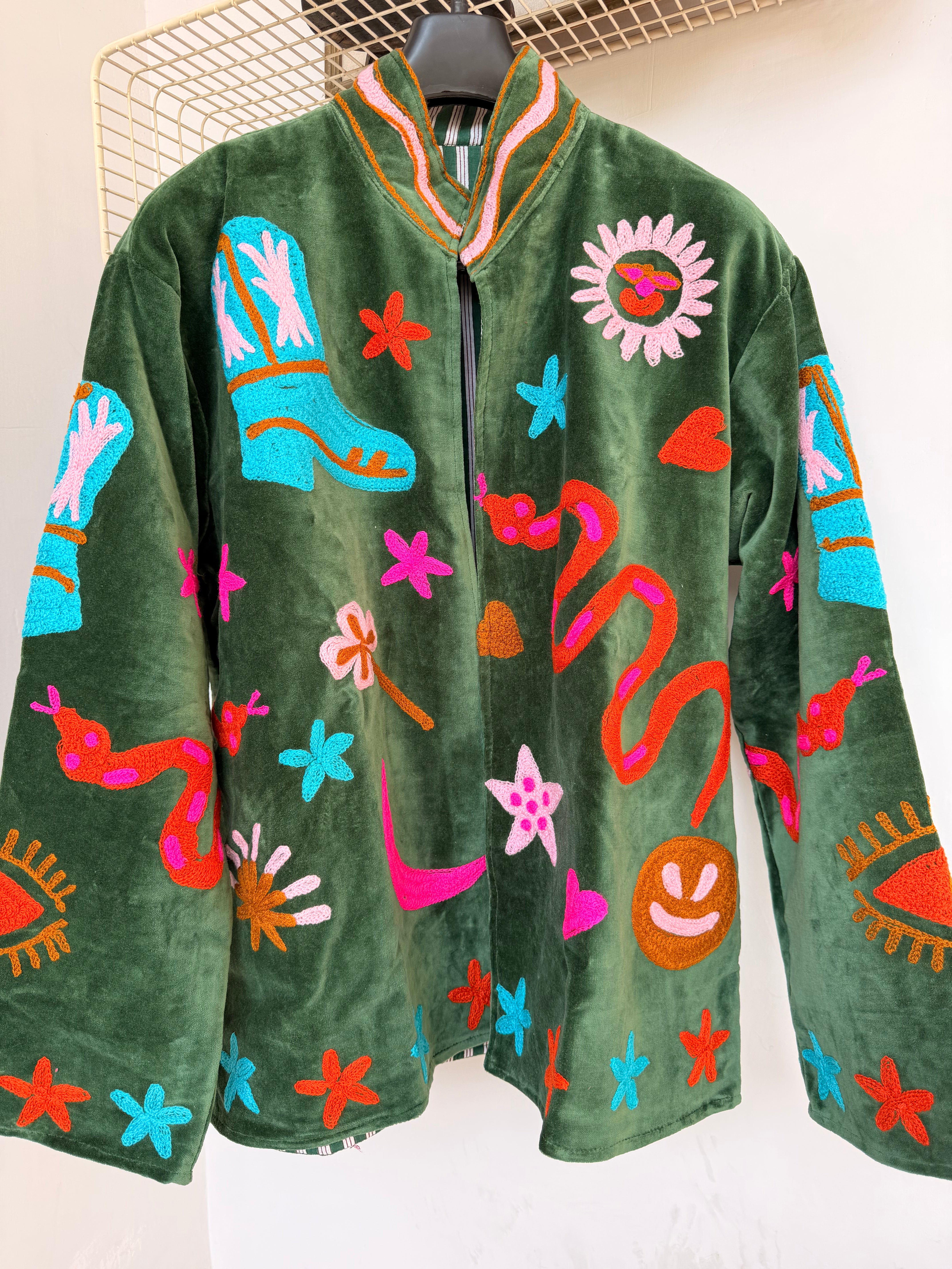 Wrap yourself in timeless artistry with our Suzani Embroidered Jacket. Featuring intricate Suzani embroidery — a celebrated Central Asian needlework tradition — this handcrafted piece beautifully merges heritage craftsmanship with contemporary elegance. Designed with soft cotton lining for comfort, it’s a statement layer that transforms any outfit effortlessly.