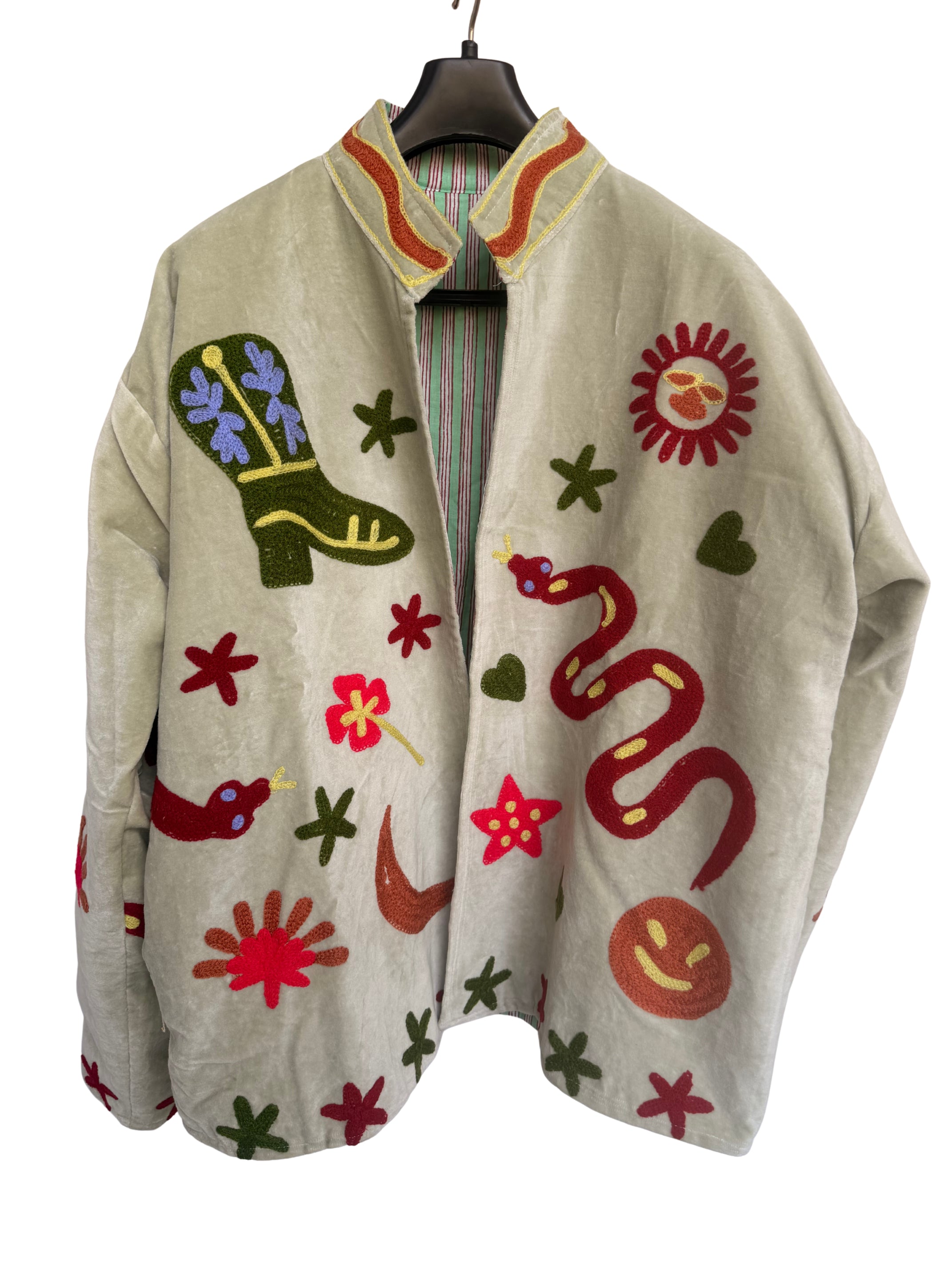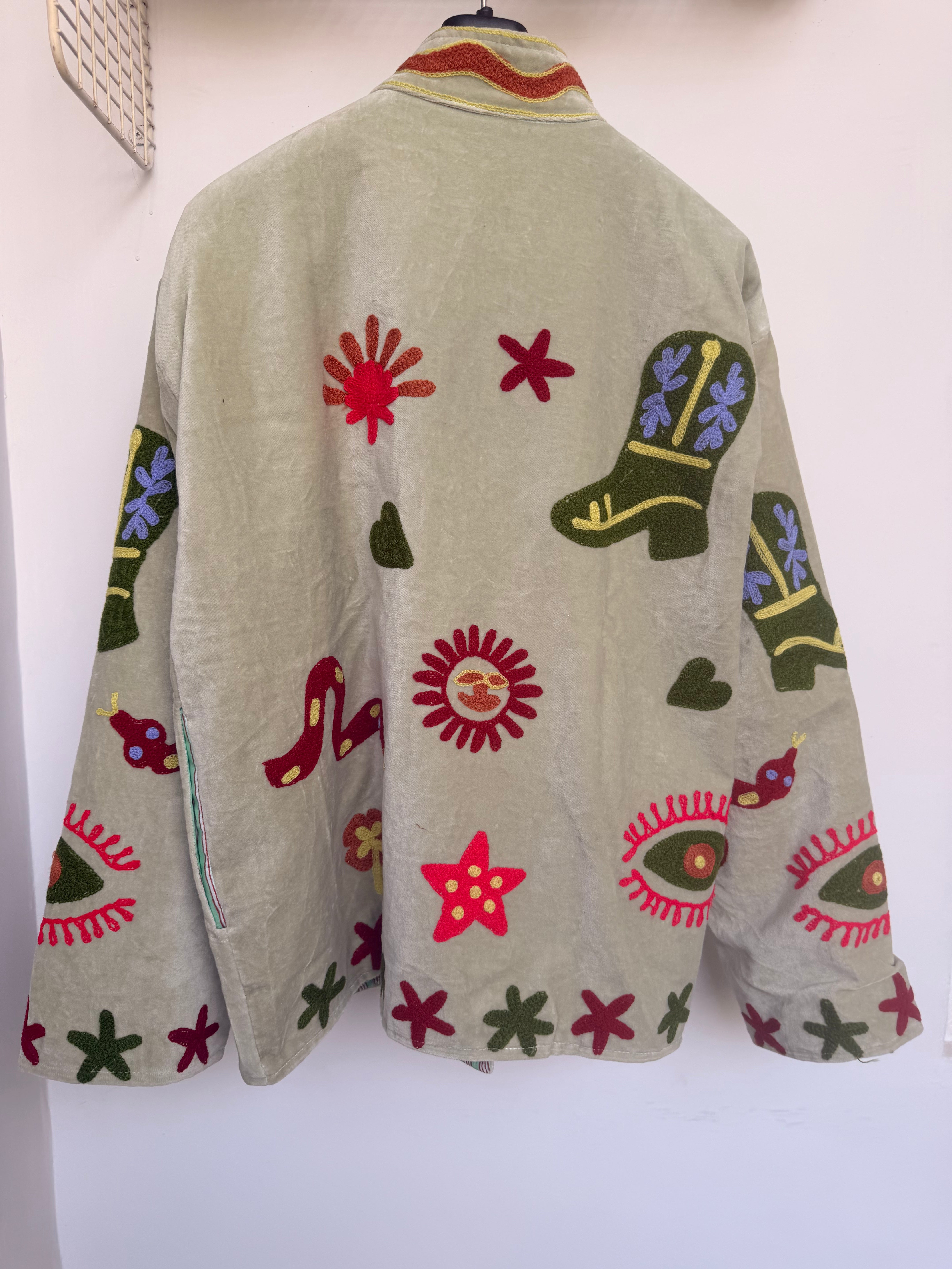 Velvet Embroidered Jacket – Pistachio