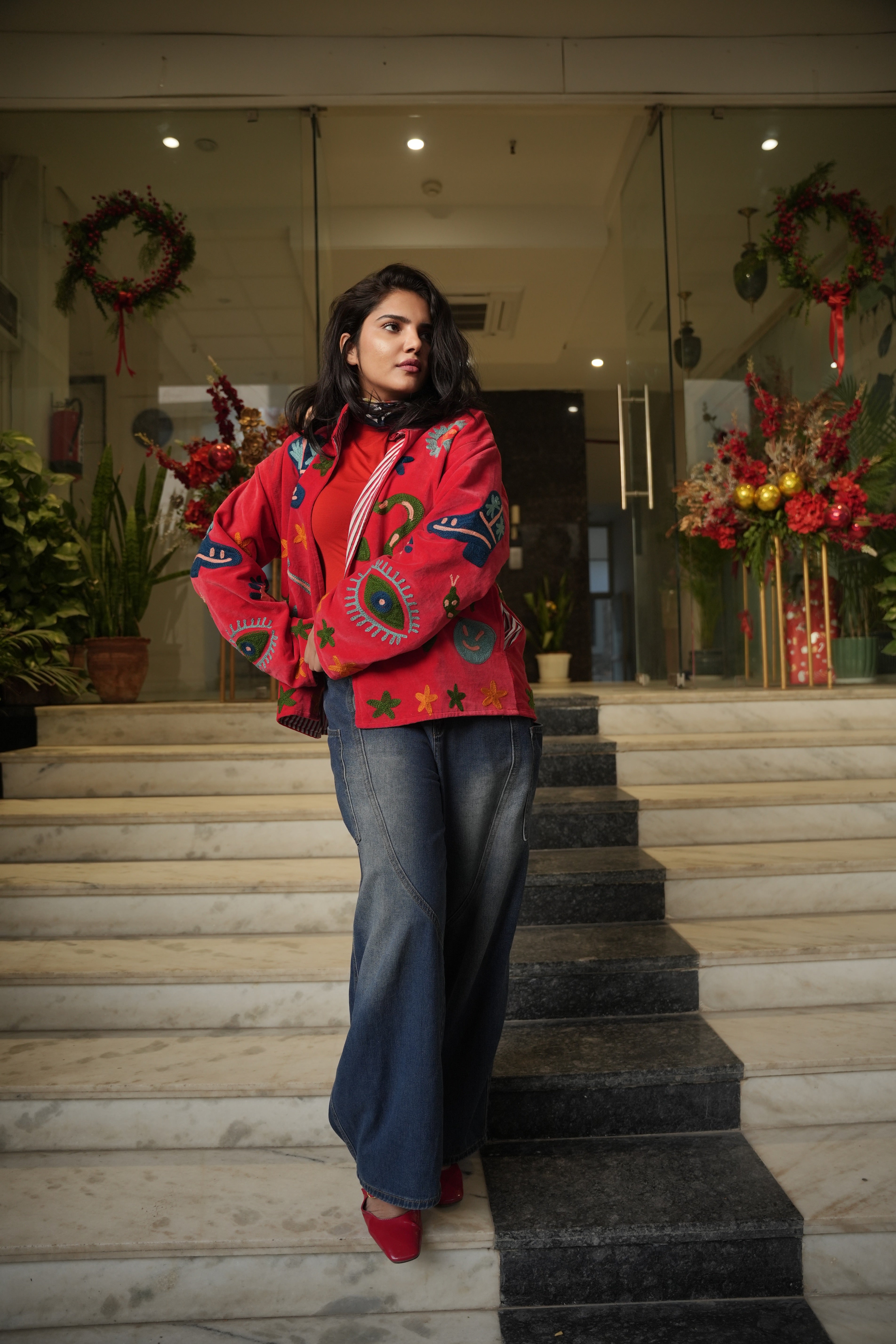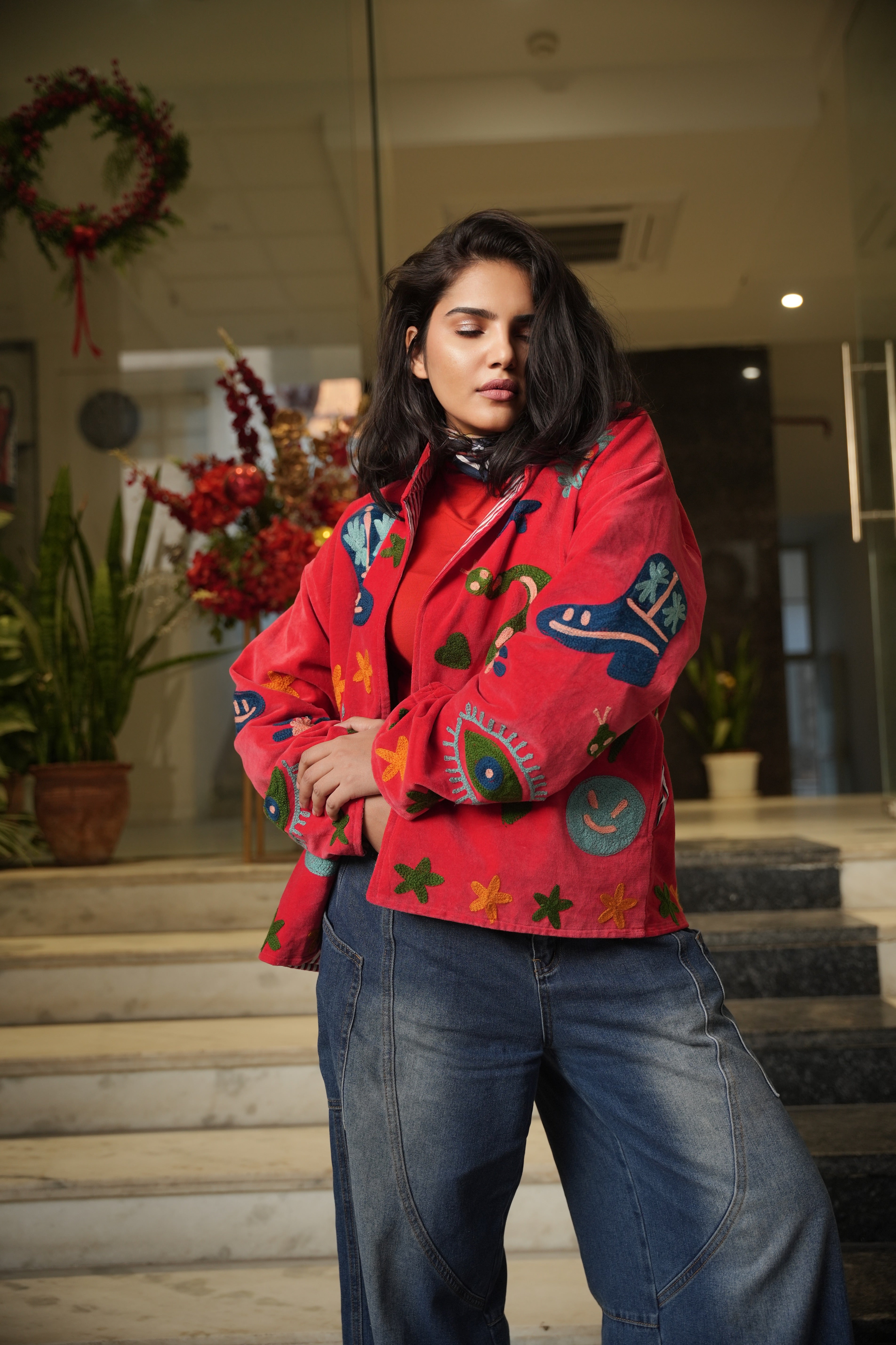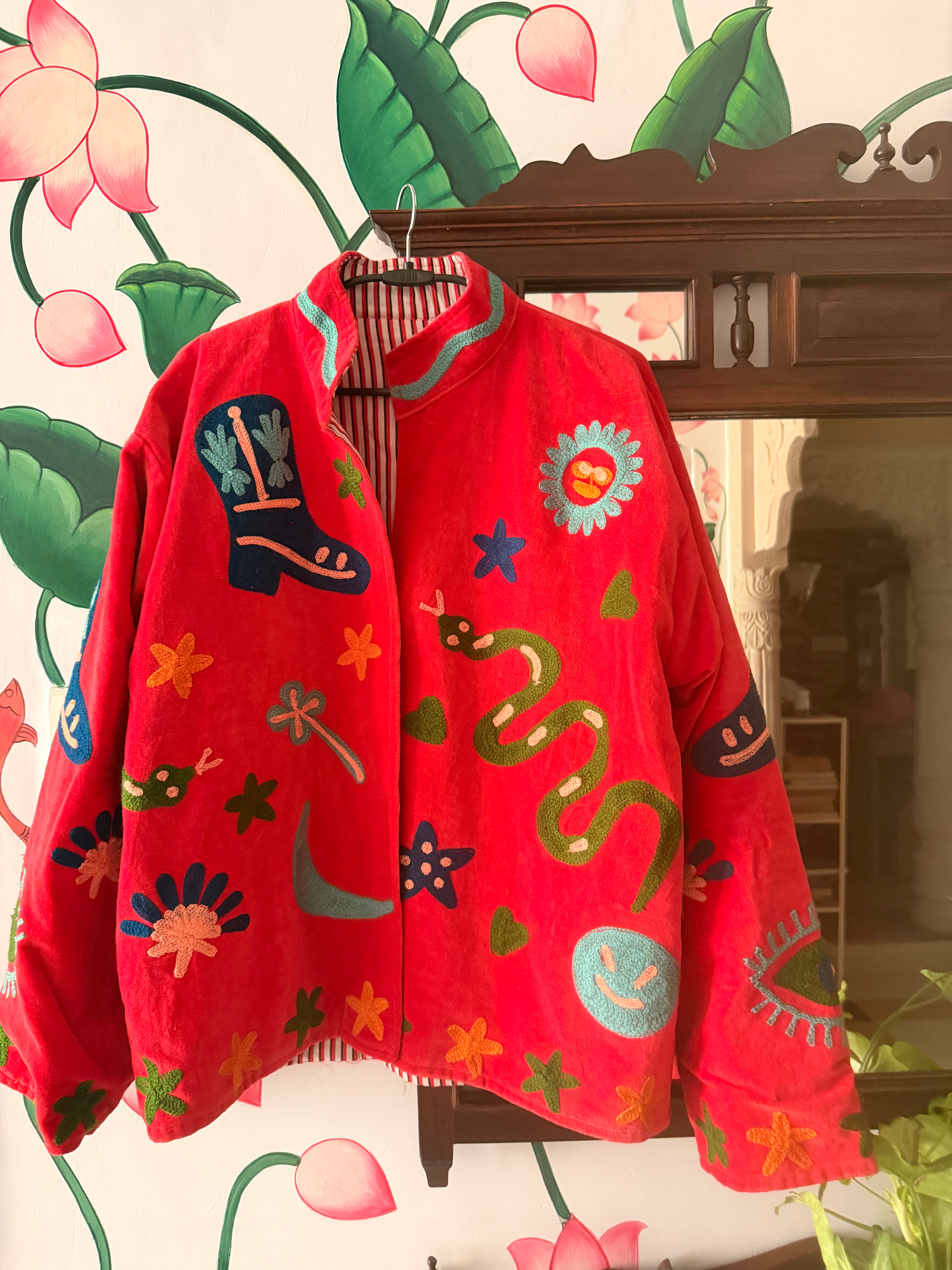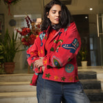 Velvet Embroidered Jacket – Red