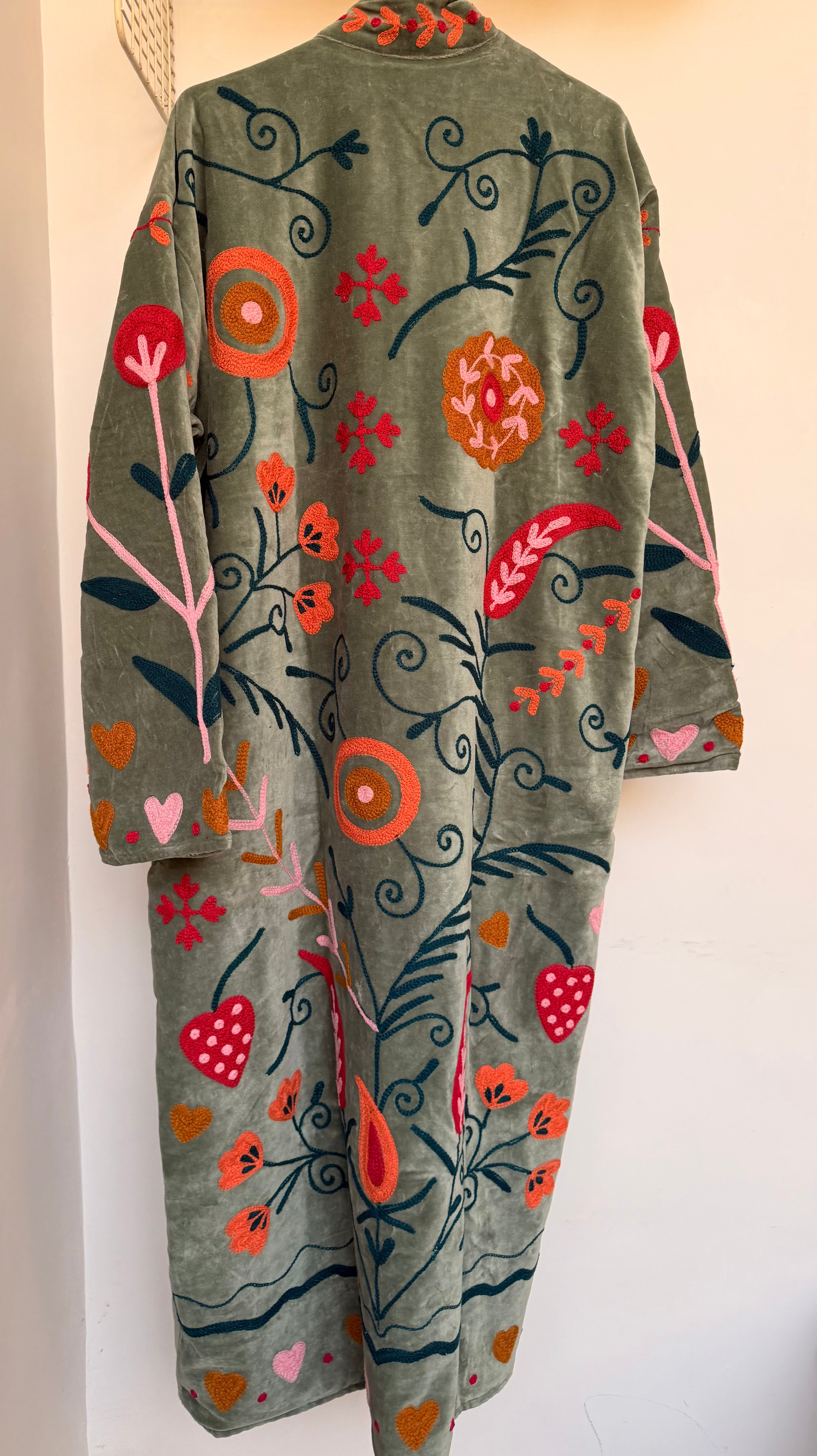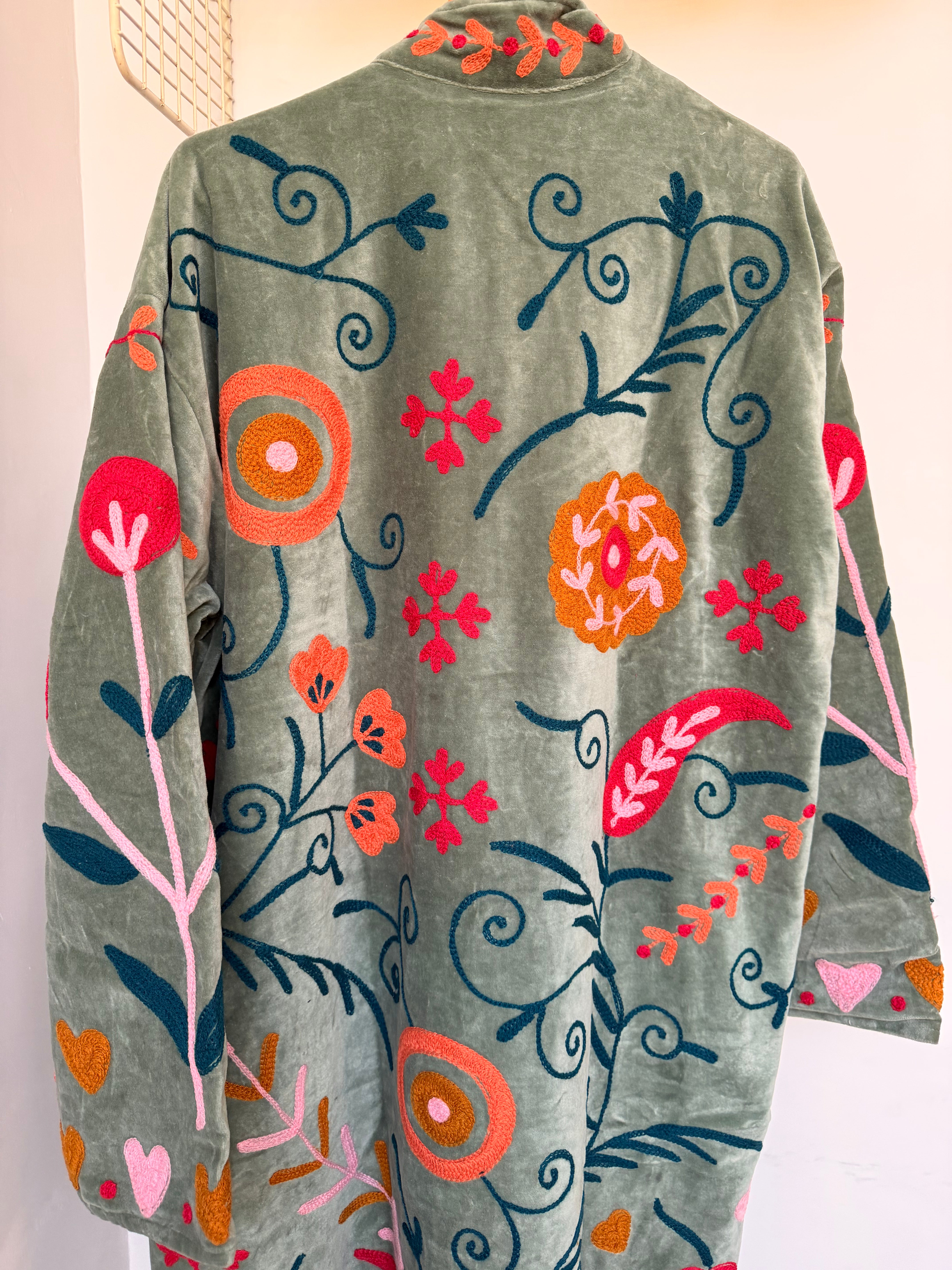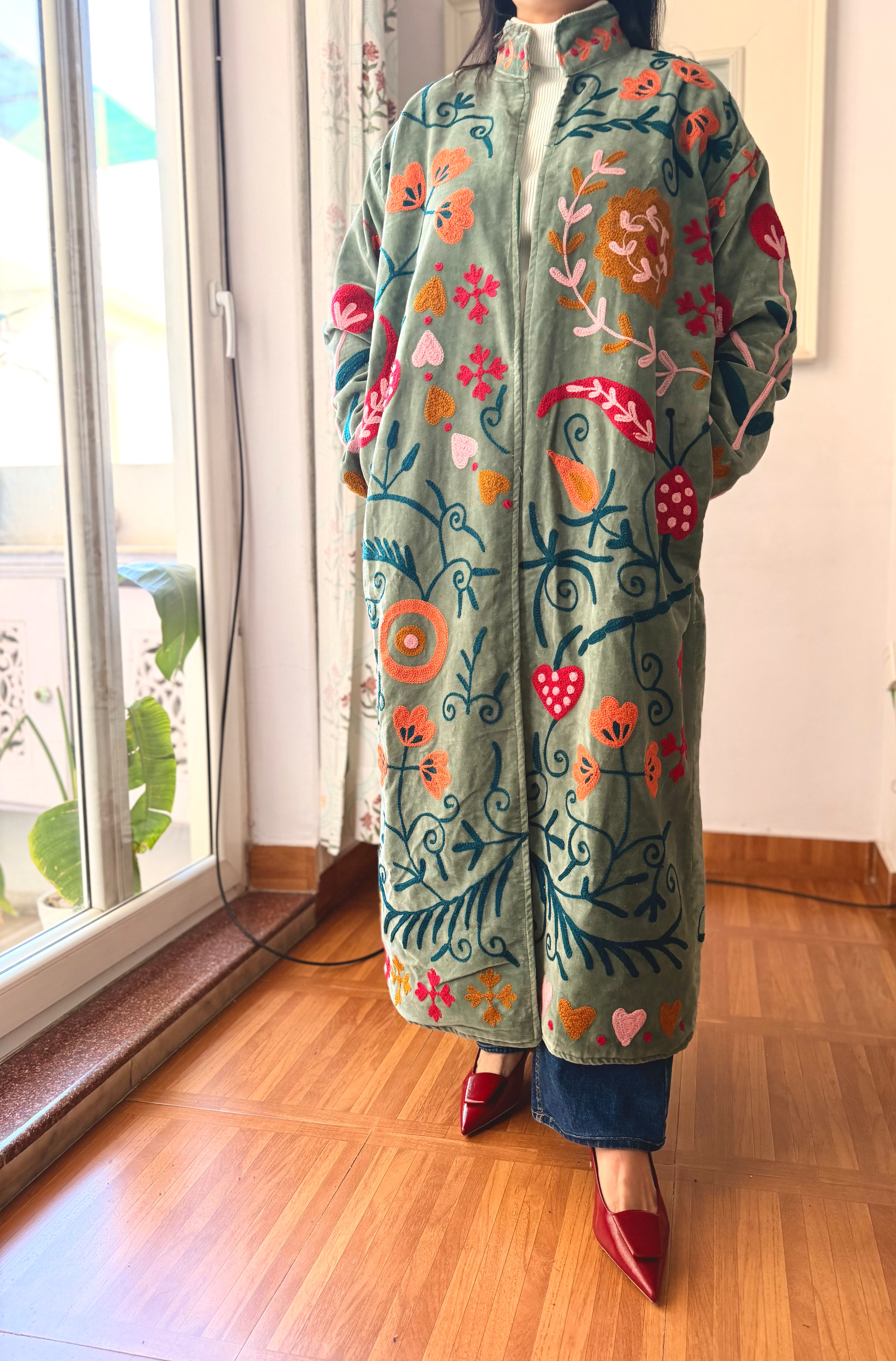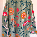 Wrap yourself in timeless artistry with our Suzani Embroidered Jacket. Featuring intricate Suzani embroidery — a celebrated Central Asian needlework tradition — this handcrafted piece beautifully merges heritage craftsmanship with contemporary elegance. Designed with soft cotton lining for comfort, it’s a statement layer that transforms any outfit effortlessly.